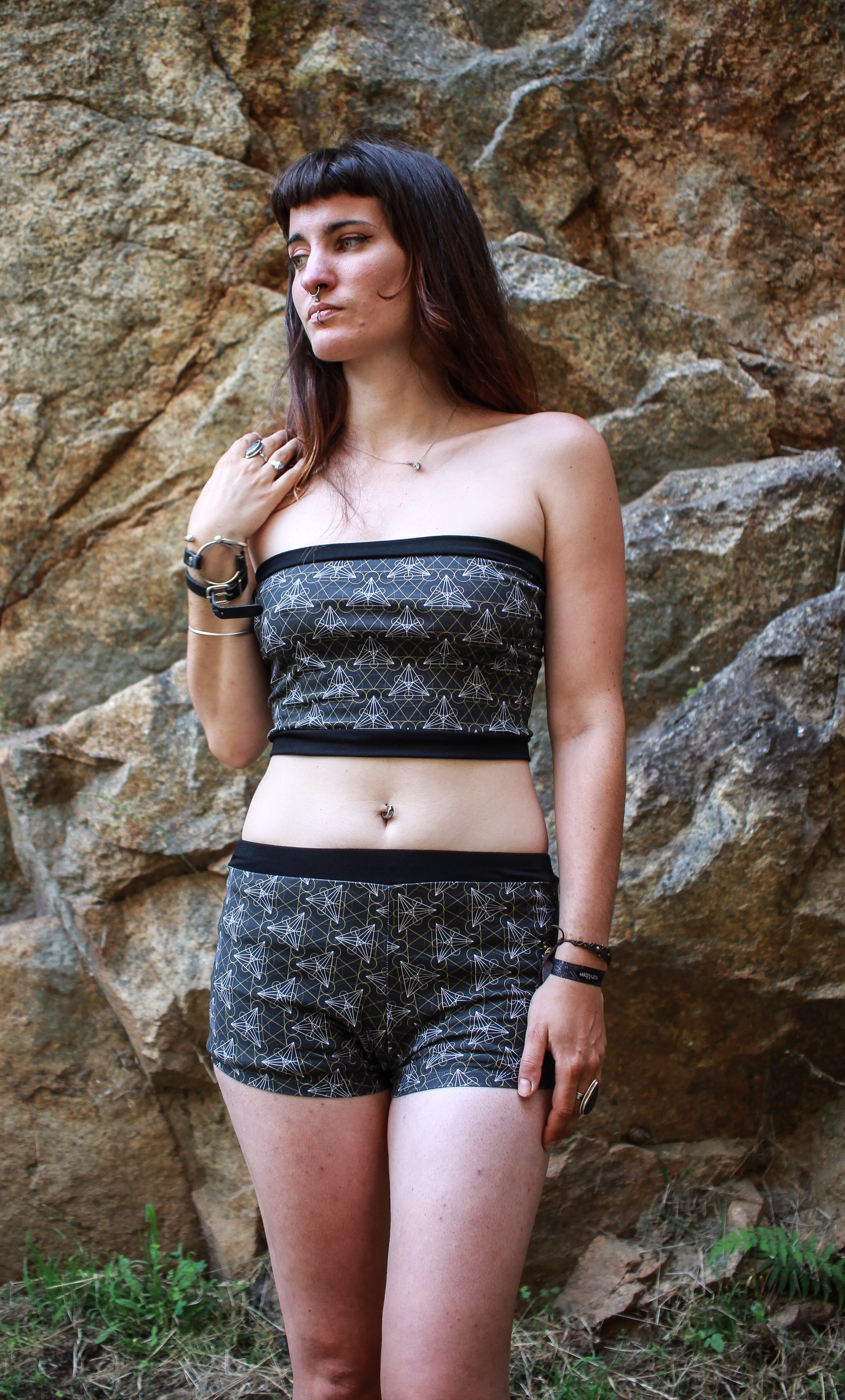 These hotpants come with a matching tube top both handmade from GOTS-approved organic cotton with a stretchy fit, these hotpants boast a trendy geometric pattern and a bamboo waistband for all-day ease. Stay cool and chic this season with this must-have addition to your wardrobe.